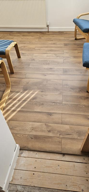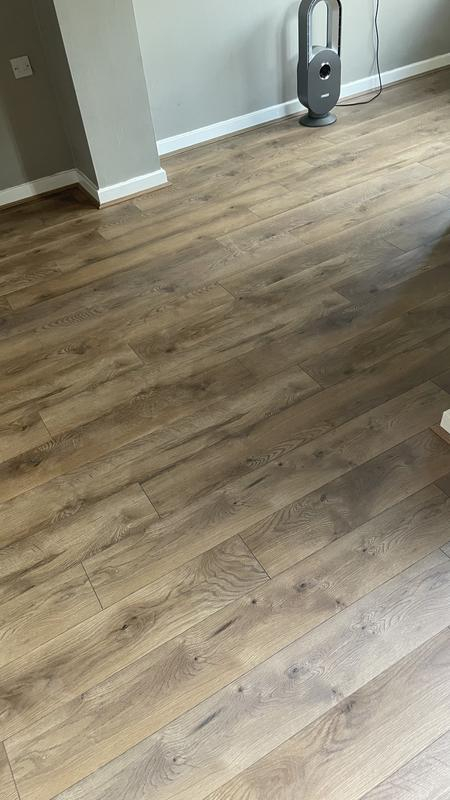 When the laminate is down on the floor and job is complete it looks amazing and thats the reason we have not given it a lower score. HOWEVER. There was an unacceptable amount of damaged planks and we are not talking about ones damaged in transit these were defects in the laminate. Probably half the boxes had at least one faulty plank, some had more. The reoccurring defect was small chips on the edge of the planks, mainly in the same place too which was predominantly on the short edge, however some were in the middle of the long edge too. Some of the damage was very small and difficult to see….until the plank was laid next to an intact one, thats when the damage became clearly visible resulting in the plank needing lifted wasting loads of our time. The laminate is ultra thin too, a piece of paper is probably thicker, this said it does appear to be tough.