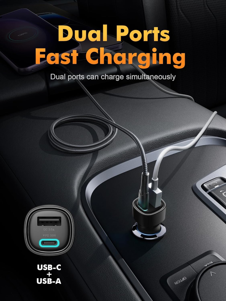 - Extreme 48W Dual Fast Charging: Combines a 30W USB-C PD port and an 18W USB-A QC 3.0 port for rapid simultaneous charging.