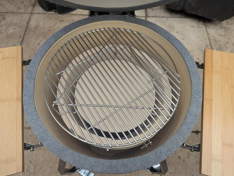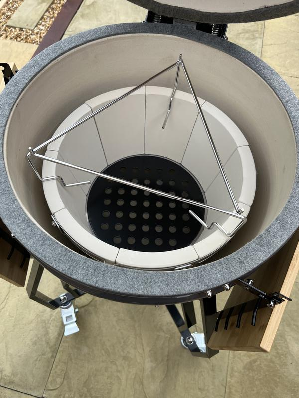 - Heavy-duty ceramic Kamado for superior heat retention and precise temperature control.