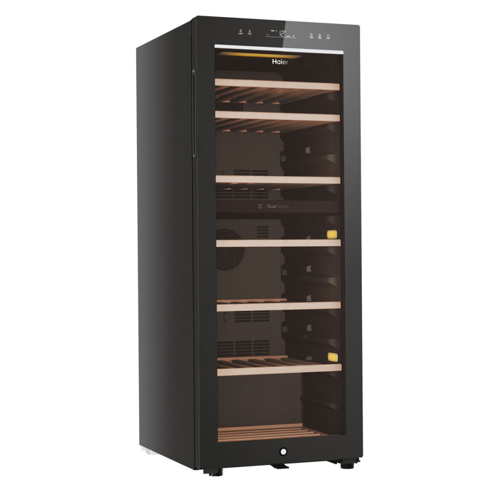 Elevate Your Collection: Haier HWS77GDAU1 77 Bottle Dual Zone Wine Cooler in Sleek Black – Premium Protection for Fine Wines