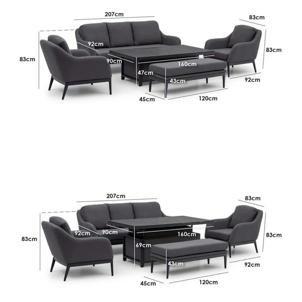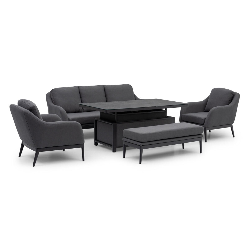 Transform your garden, patio, or decking area into a dynamic outdoor oasis with the premium Harbour Lifestyle Luna 5 Piece Patio Set. This versatile furniture collection is engineered for luxurious, flexible living, featuring a unique rising table that effortlessly converts from a casual coffee height to a formal dining setting. Crafted with a rust-resistant aluminium frame and finished with durable, UV-resistant fabric, the Luna set is designed for year-round endurance and comfort. It includes a spacious three-seater sofa, two comfortable armchairs, a matching bench, the multi-functional rising table with a chic ceramic glass top, and a complimentary protective cover, offering the ultimate solution for entertaining, relaxing, and dining outdoors. Invest in the Luna set for unparalleled style, convenience, and long-lasting quality.