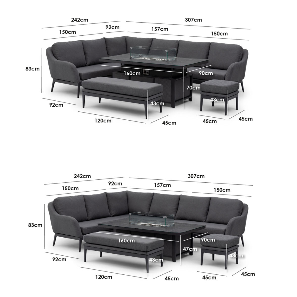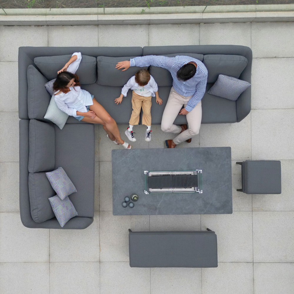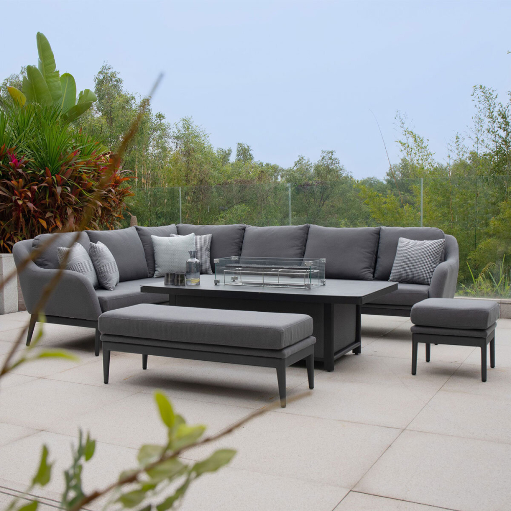 Harbour Lifestyle Luna Corner Patio Set with Rising Firepit Table (Right or Left Hand) + Cover