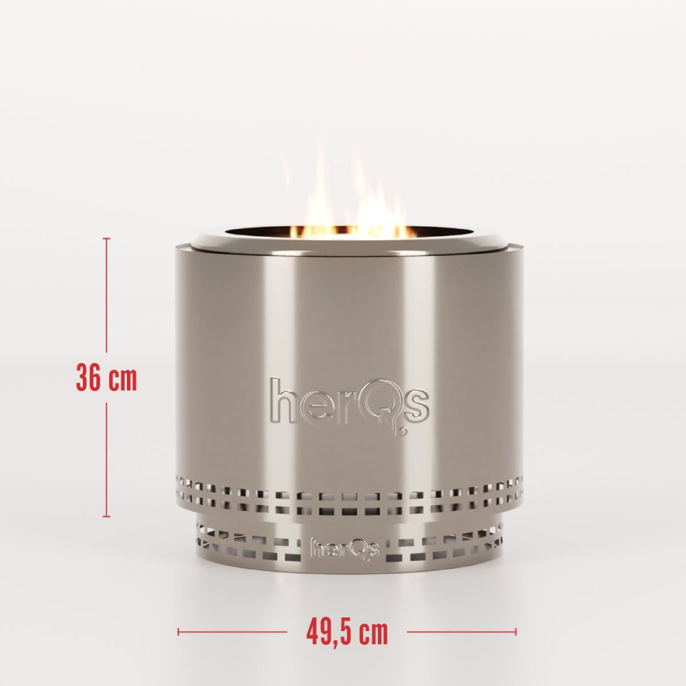 HerQs Blaze 50cm Wood Burning Stainless Steel Fire Pit Bundle
