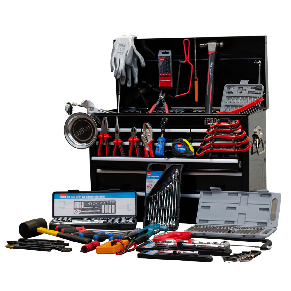 • Includes a full range of high-quality sockets, spanners, wrenches, pliers, and screwdrivers.