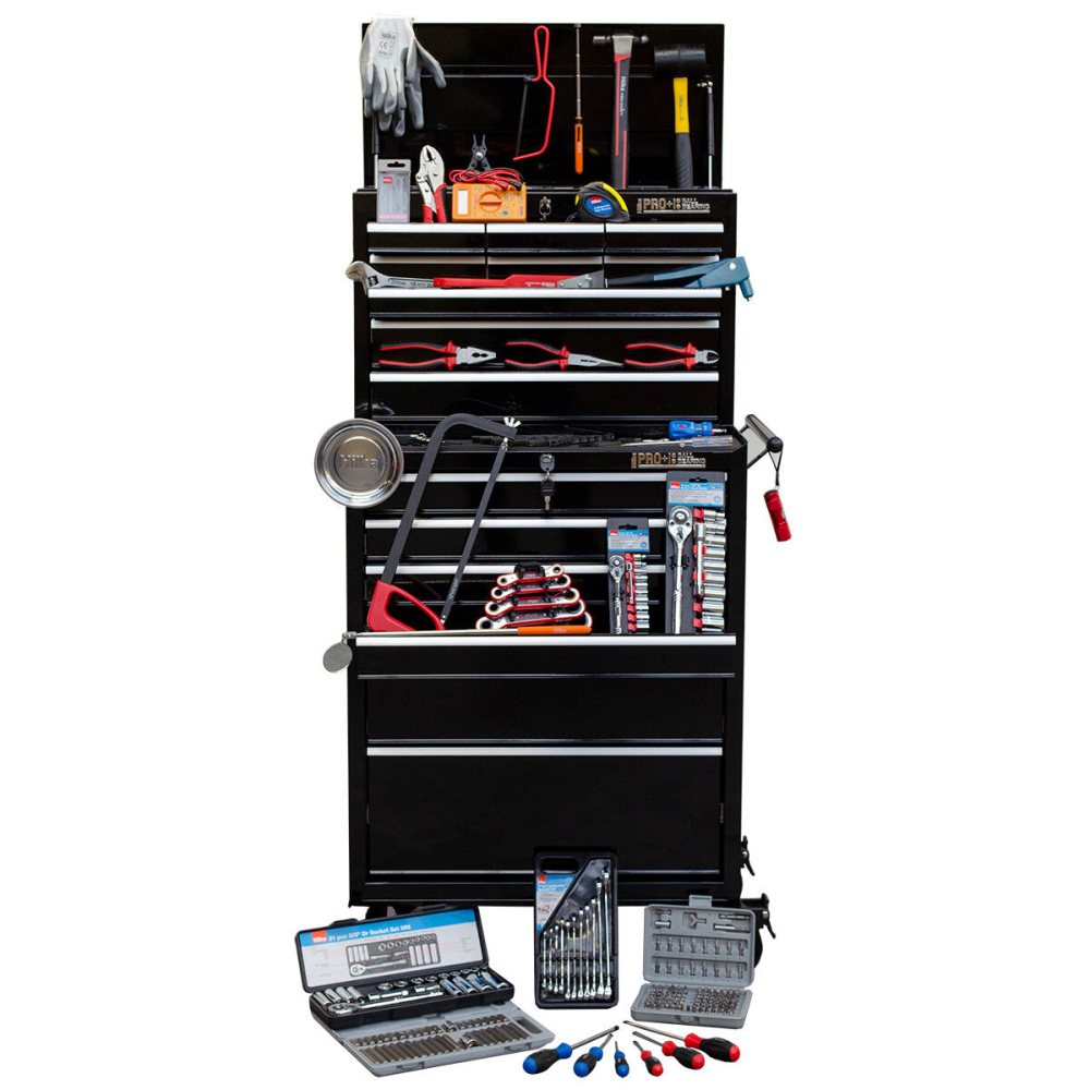 • Integrated 15-drawer heavy-duty professional storage system (9-drawer chest & 6-drawer trolley) for superior organization.