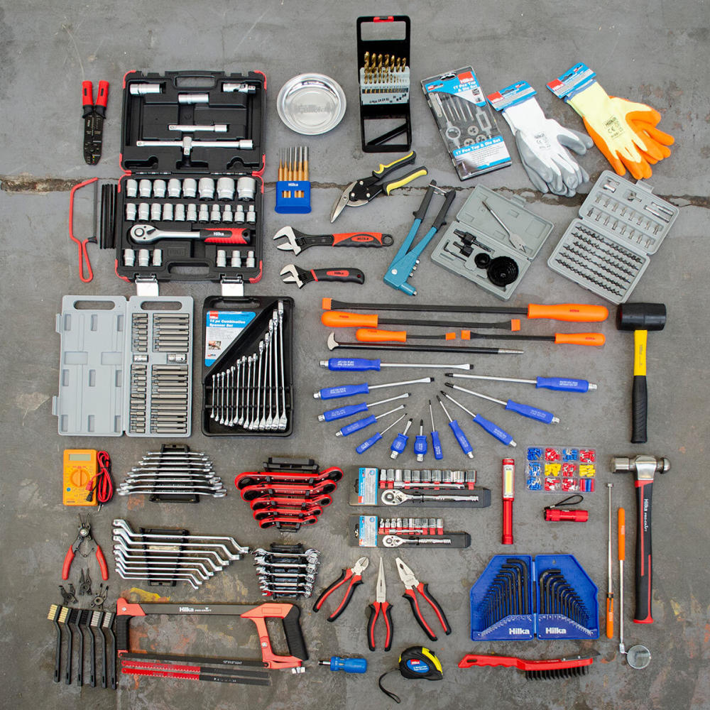 Upgrade your workshop with the Hilka 527 Piece Tool Kit, the definitive, professional-grade mechanics set for any maintenance or repair job. This comprehensive toolkit features a massive assortment of high-quality hand tools, all organized within a heavy-duty, 15-drawer rolling tool chest and cabinet system for maximum durability and efficiency.