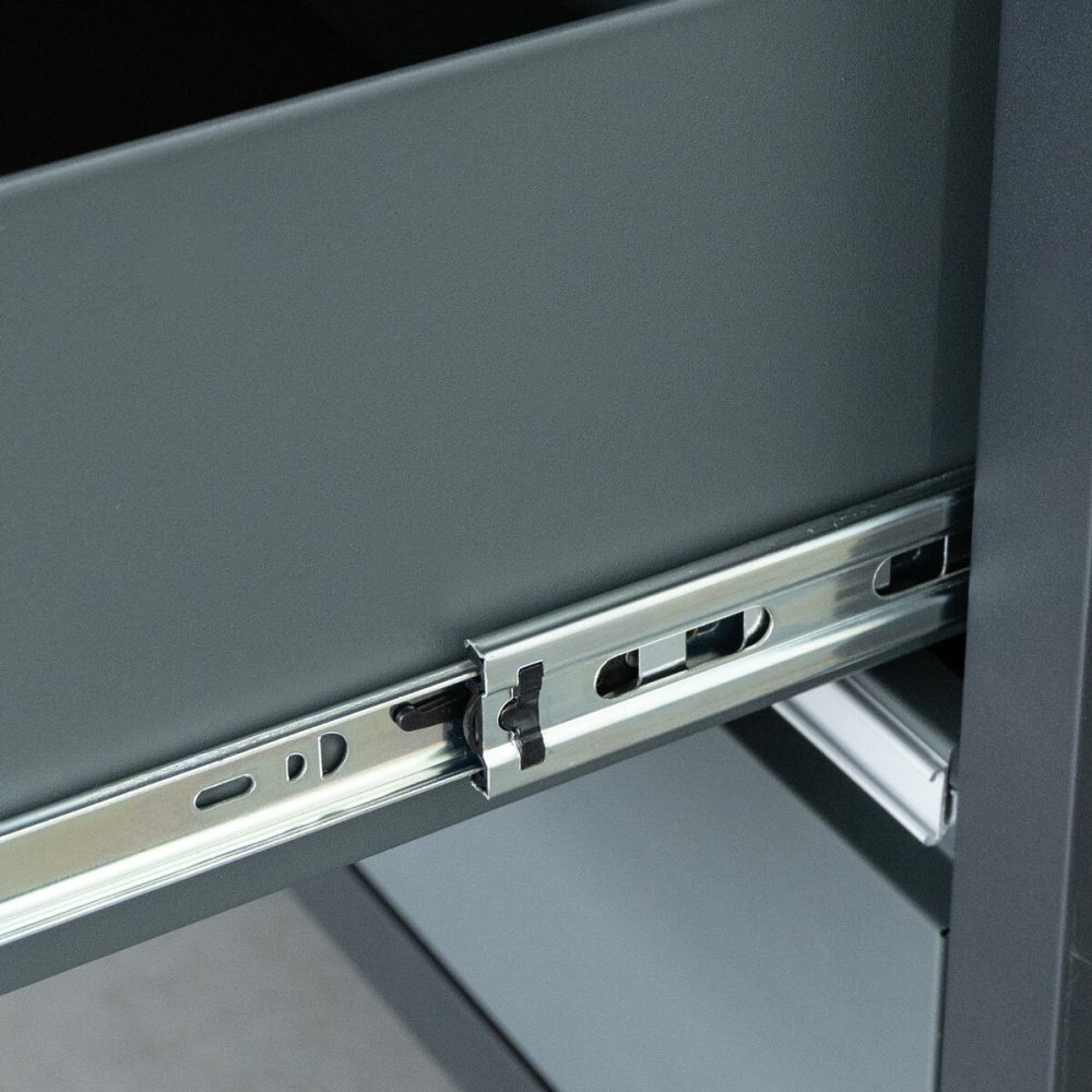 • Features secure locking cabinets and smooth ball-bearing drawer slides.