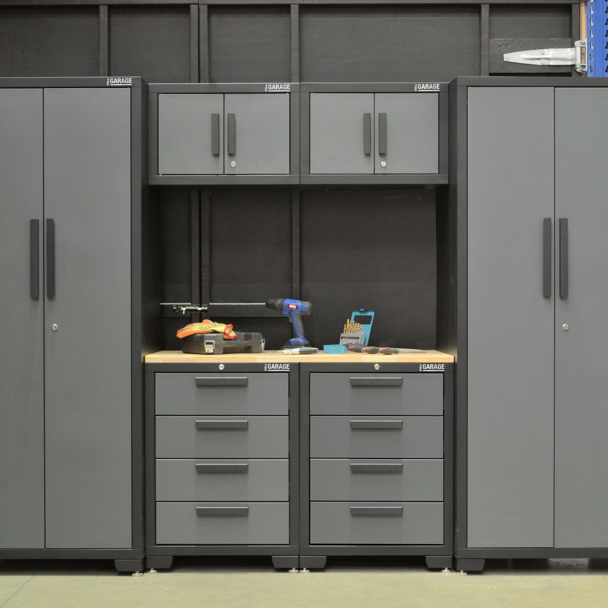 The Hilka Professional 24 Gauge Steel, 7 Piece Modular Cabinet Set is an ideal storage solution for any garage or workshop. This modern meets practical set is packed with useful features to ensure you have all you need to maximise your work now and in the future.