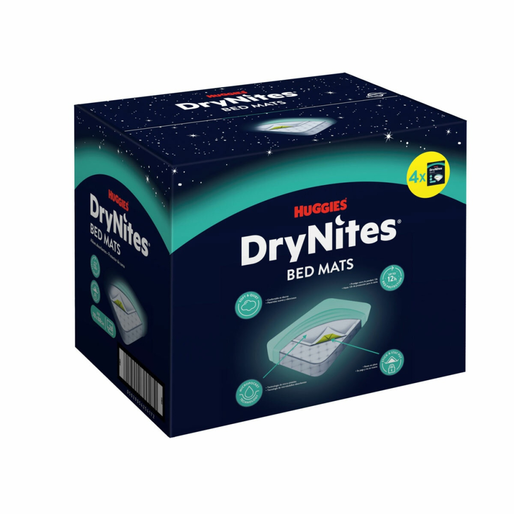 Stop worrying about night-time accidents and ensure a peaceful sleep for your child with the Huggies DryNites Bedmats, now available in a value 4 x 7 pack (28 mats total). Engineered with super-absorbent layers and designed to fit perfectly across a single-size bed, these disposable waterproof sheets provide maximum protection and discretion. The non-slip adhesive strips keep the mat securely in place, preventing shifting and providing reliable, edge-to-edge coverage all night long. Give your child the confidence they need and reduce laundry stress with this essential bedwetting solution that offers comfort and peace of mind.