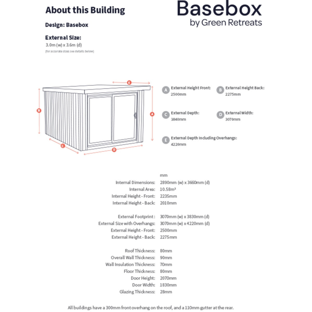 - Premium, Fully Installed Basebox Garden Room (External Footprint: 3070mm x 3830mm).