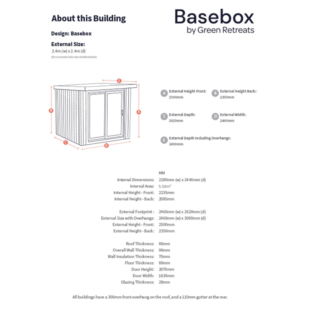 Transform your outdoor living space instantly with the professionally Installed Green Retreats Basebox Garden Room. This high-quality, pre-assembled modular garden room offers the perfect solution for a home office, gym, studio, or extra living space. Featuring an external footprint of 4290mm (width) x 2620mm (depth), the Basebox is designed for optimal spatial efficiency and fast, hassle-free installation. Experience a premium, fully insulated, and secure garden building that seamlessly extends your home’s functionality and value, all handled by our expert installation team.