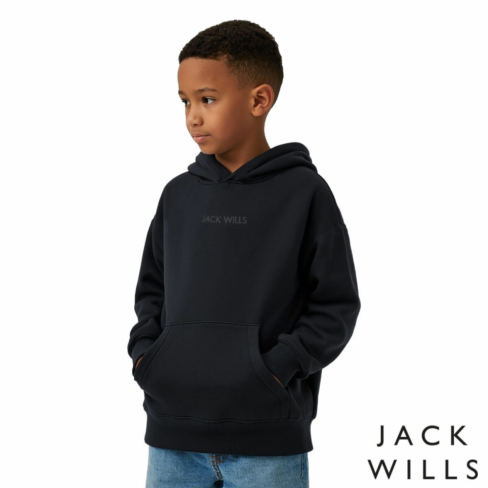 - Features the iconic Jack Wills logo, a fixed hood, and a convenient kangaroo pocket.