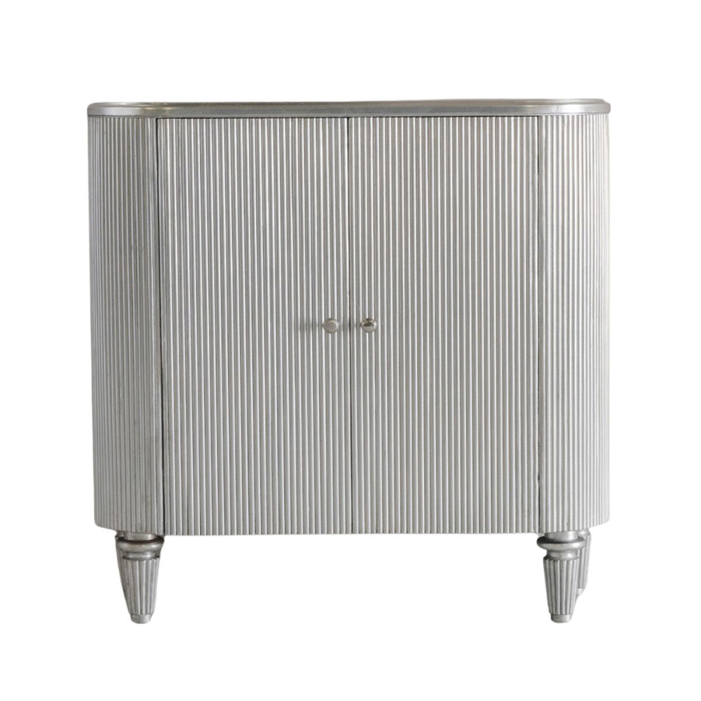 Transform any room into a sophisticated entertainment space with the stunning Jeeves Silver Drinks Cabinet. This high-end, contemporary bar cabinet is designed for the modern host, seamlessly blending luxurious aesthetics with practical functionality. Crafted with a sleek silver finish and striking geometric detailing, the Jeeves Cabinet serves as both a stylish focal point and a highly organized storage unit for your finest spirits, glassware, and bar accessories. Open the doors to reveal ample internal storage, including dedicated racks for wine bottles and shelves perfect for decanters. Its compact footprint makes it ideal for apartments, dining rooms, or home offices, offering instant elegance and making entertaining effortless. Invest in this statement piece to redefine your home bar experience.