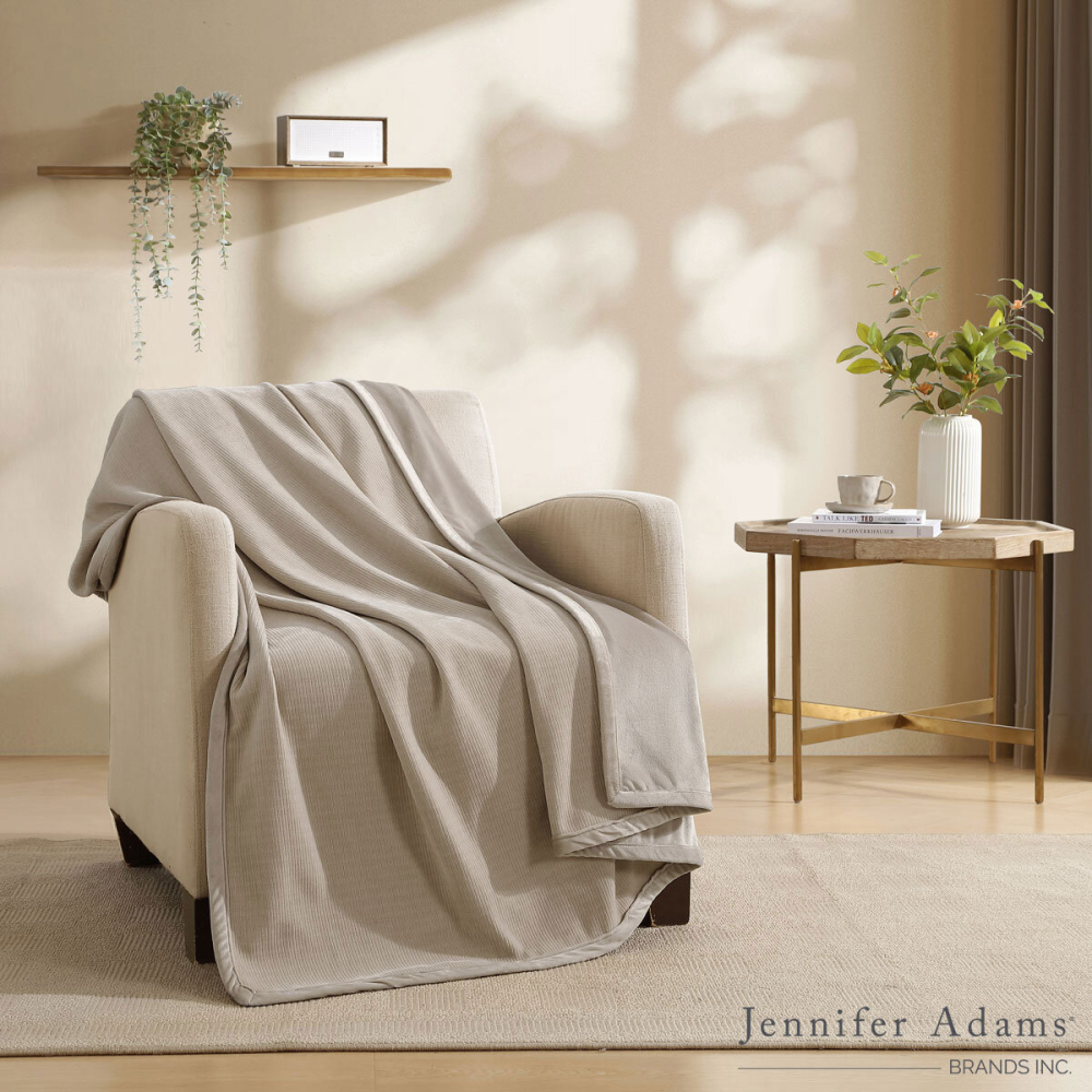 Indulge in luxurious warmth and softness with the Jennifer Adams Luxe Reversible Faux Rabbit Fur Channel Throw (152 x 178 cm). This premium, cruelty-free blanket features high-density faux rabbit fur and sophisticated channel stitching, instantly transforming any space into a cozy, elegant sanctuary for year-round comfort.