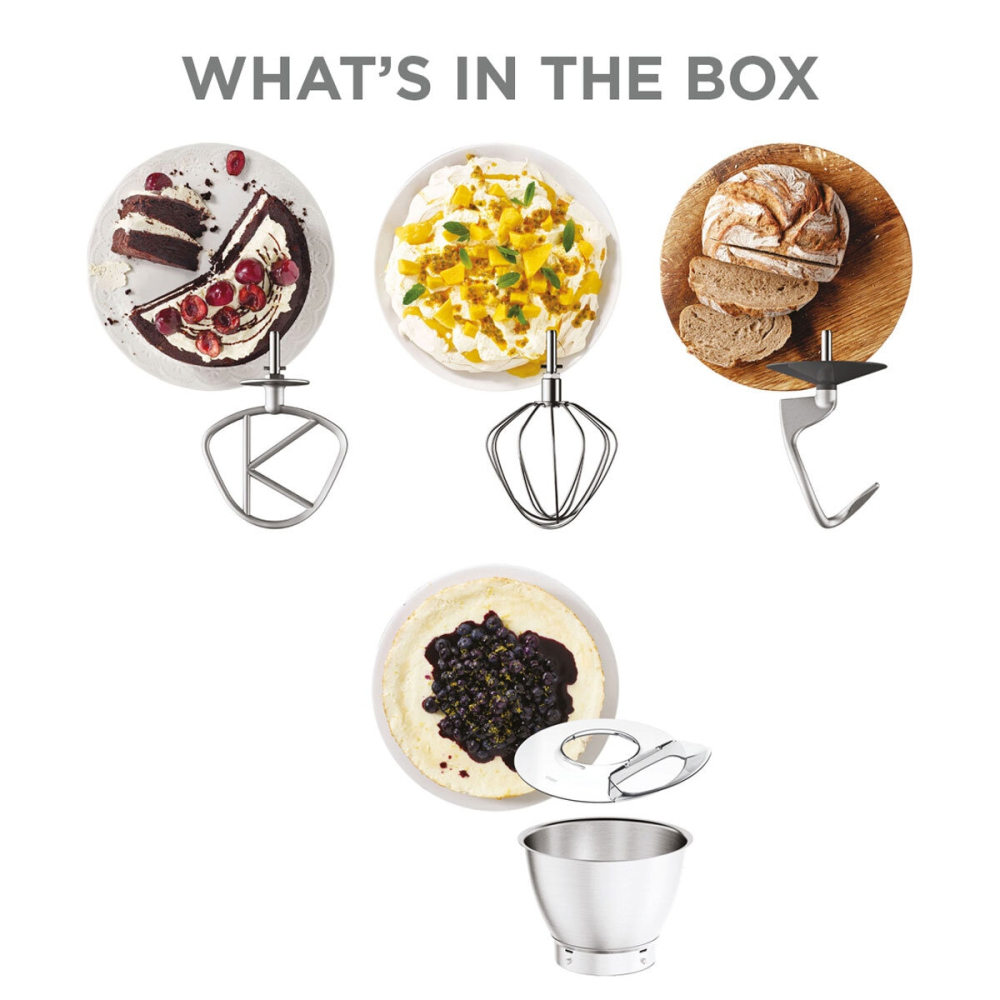 - Includes 3 Bowl Tools: K-Beater, Dough Hook, and Whisk for versatile baking applications.