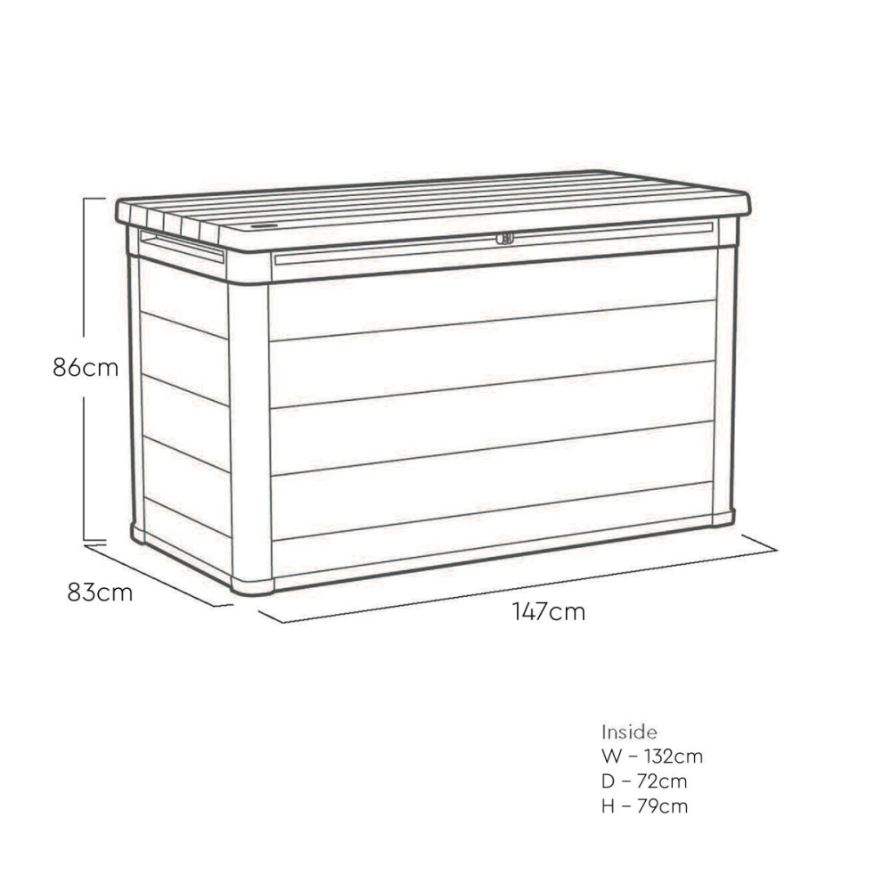 - Extra-Large 870 Litre (230 Gallon) Capacity: Massive storage volume perfect for large items like garden furniture cushions.