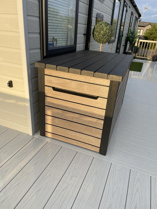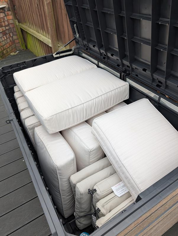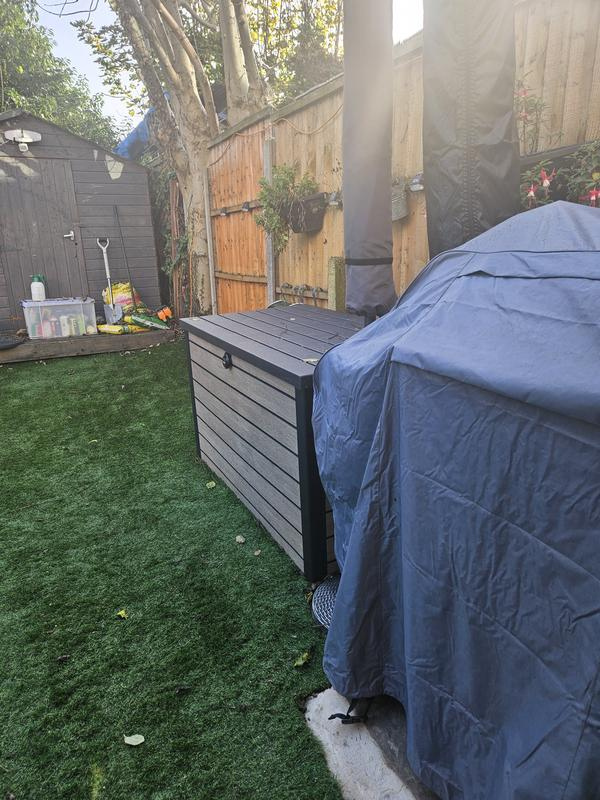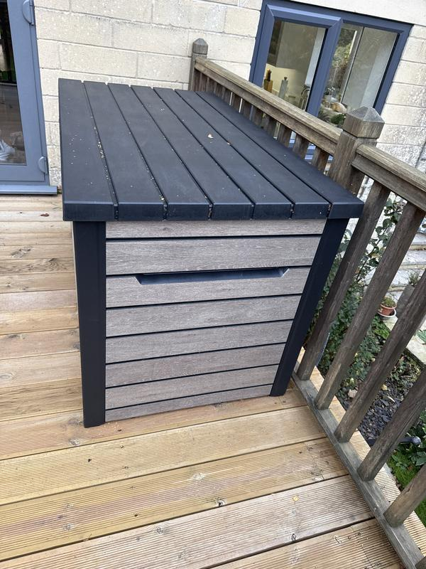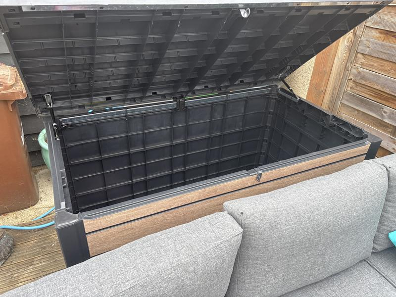 The size of the box is perfect for my garden furniture seating cushions and the style blends in really well with the rest of the garden. Easy to assemble too.