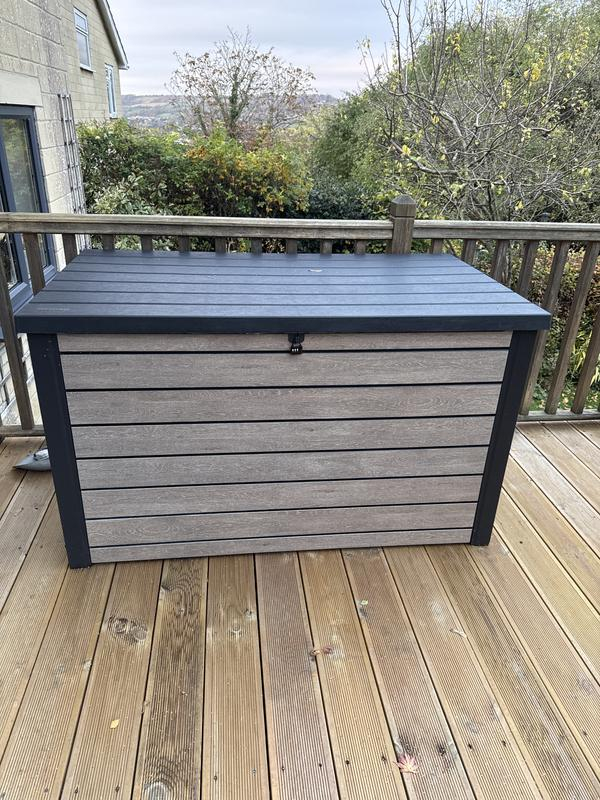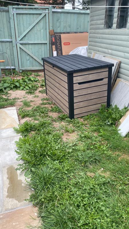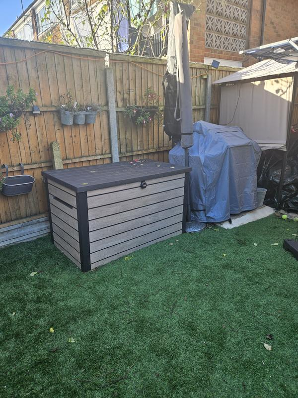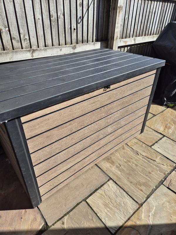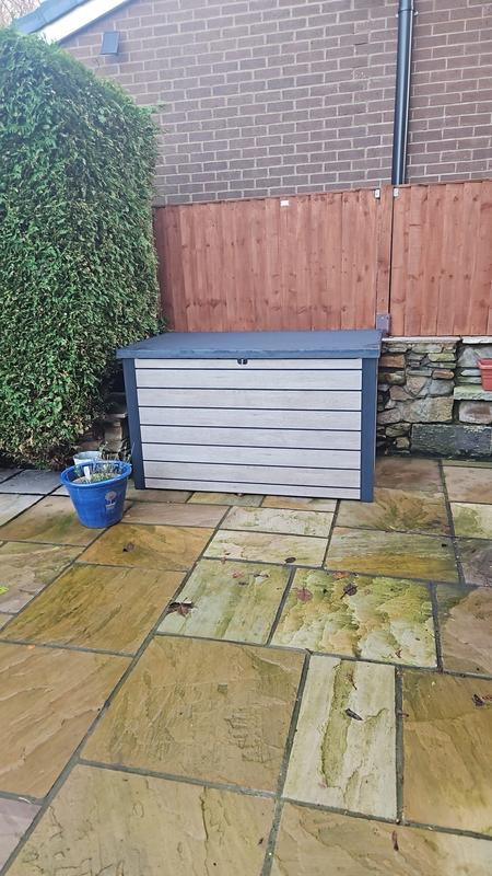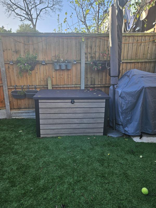I have now bought two of these Keter outdoor storage boxes. Over the years I have had many such boxes and this Keter is by far the best. I even found the construction instructions easy to follow, which is unusual, and the construction itself simple. It is sturdy, strong and capable of storing an awful lot of garden stuff in a watertight environment. Highly recommended, especially if you get them at a discounted price like I did!