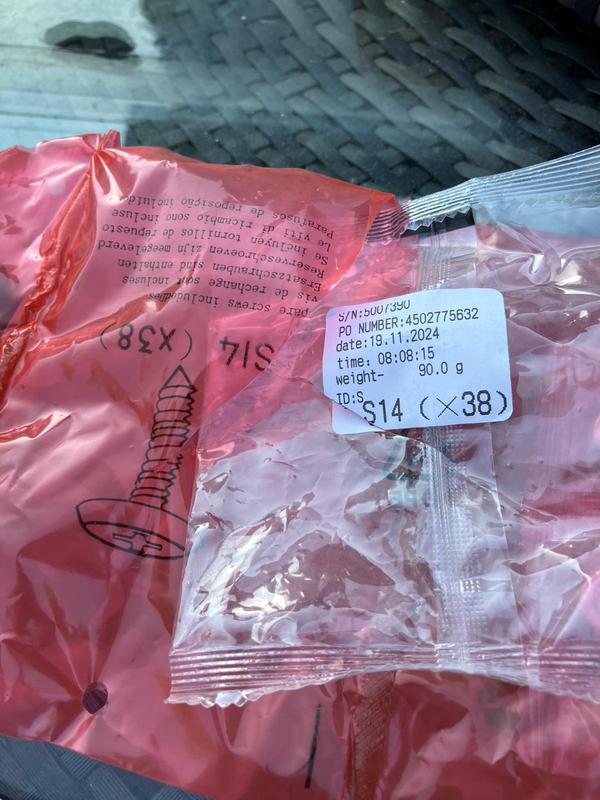 Original order damaged so had to wait for reorder to arrive (approx one month later). Lovely looking storage box, however, one pack of 38 screws had been cut open and emptied. Couldn’t build the box without a trip to B&Q… not ideal