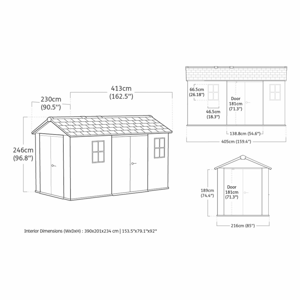 Keter Newton Plus 13 x 7ft 5″ (3.9 x 2.2m) Dual Entry Storage Shed