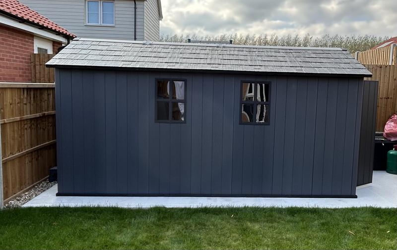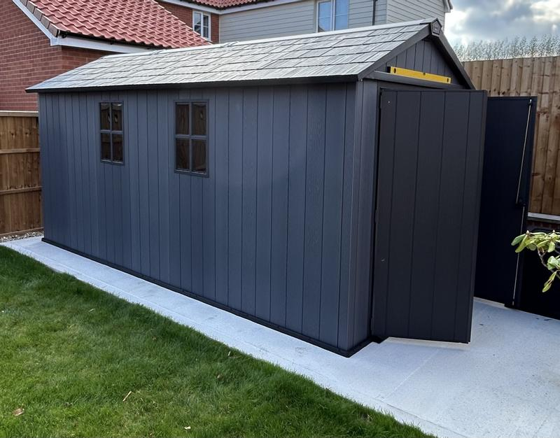 Bought this new shed from thinkassemble.co.uk and took my time, a few hours each day over three days, and found it so easy to follow the instructions and assemble the whole shed down to the last screw, which was unusual for me. Although it said on the instructions to use a level hard stand, our drive and old garage stand that we used was on a very slight gradient, I overcome this by using shims along the sides during the build to level up the shed, then removed them when the shed was up, no movement at all in the shed doing this. I did use shims at the end of the build, as indicated may be required in the instructions, to level the doors. It’s a great size and replaces the storage area we would have used in our old garage.