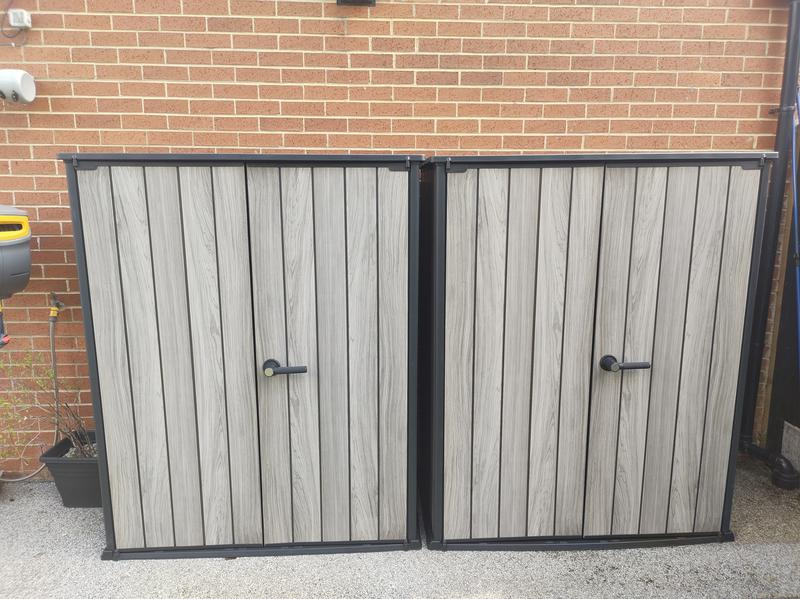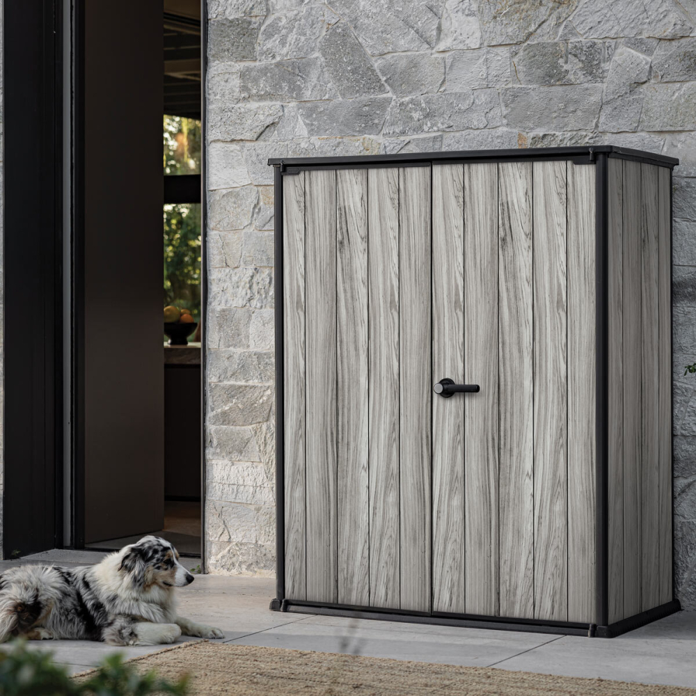Maximize your outdoor storage space with the Keter Storm Grey Signature Alto, a premium 1,415 Litre Vertical Storage Shed designed for durability and organization. Crafted with Keter’s innovative DecoCoat Composite, this shed offers the aesthetic appeal of subtle woodgrain while providing the extreme weather resistance and longevity of resin. Perfect for securely storing long garden tools, BBQ accessories, bins, or pool supplies, the vertical orientation is ideal for small gardens, patios, or side yards. The lockable double doors ensure easy access for bulky equipment, and the included floor panel provides ultimate protection against mud and water. Get superior organization right out of the box with the two included interior shelves and brackets.