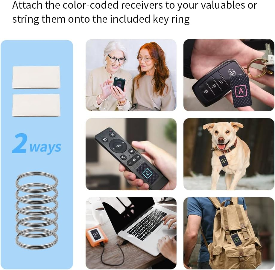 • 6-in-1 Color-Coded Tracking: Includes 6 distinct receivers to track multiple valuables—keys, wallets, glasses, phones, and luggage—simultaneously.