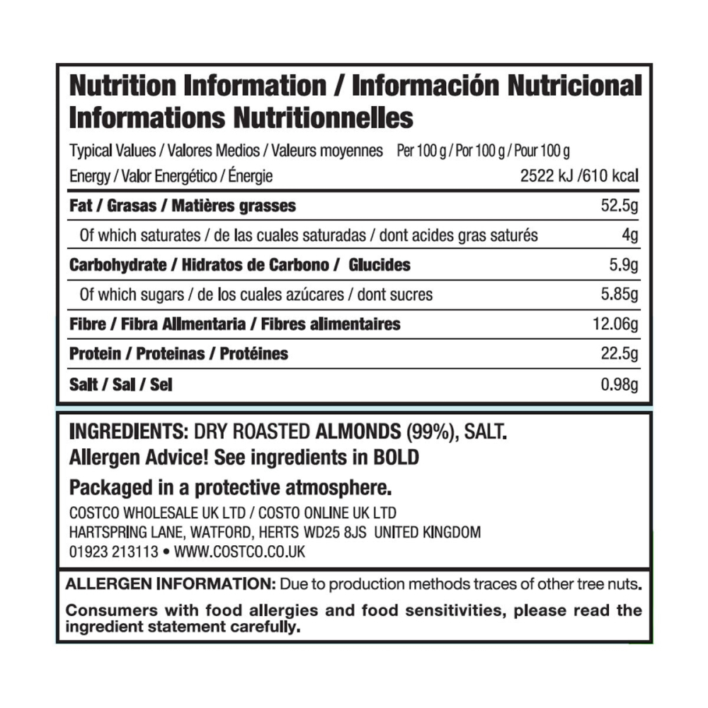 Elevate your snacking and boost your daily nutrition with the massive 1.13kg pack of Kirkland Signature Dry Roasted Almonds. These aren’t just any nuts—they are perfectly dry roasted to crunchy perfection without adding excessive oils, and lightly seasoned with sea salt to enhance their natural, rich flavor. Almonds are an essential superfood, packed with healthy fats, fiber, and protein, making them the ultimate guilt-free treat, energy booster, or salad topping. The generous, resealable pack ensures maximum freshness and convenience for the whole family or for serious bakers and snack enthusiasts.