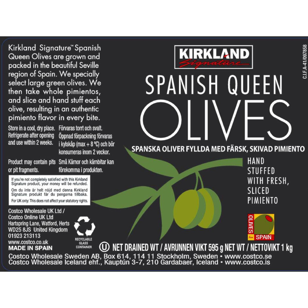 Kirkland Signature Spanish Queen Pimiento Stuffed Olives, 595g
