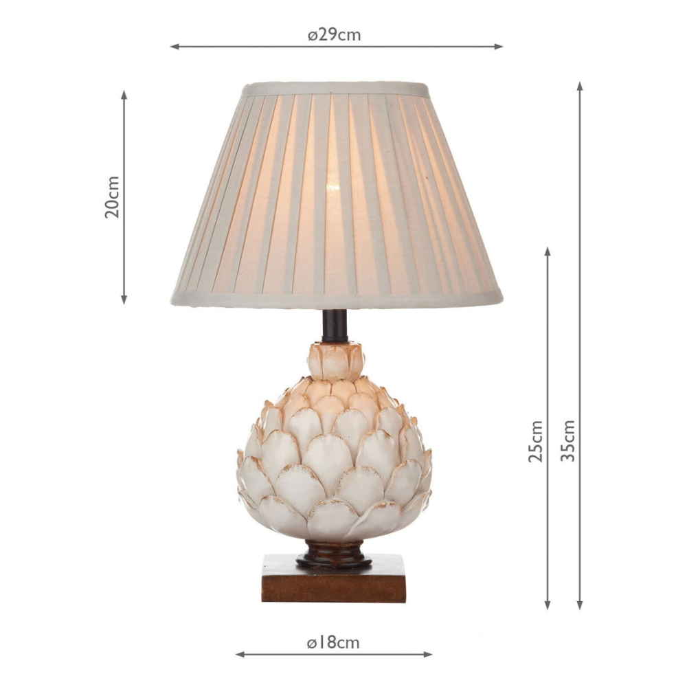 • Elegant artichoke-inspired ceramic base in a cream finish.