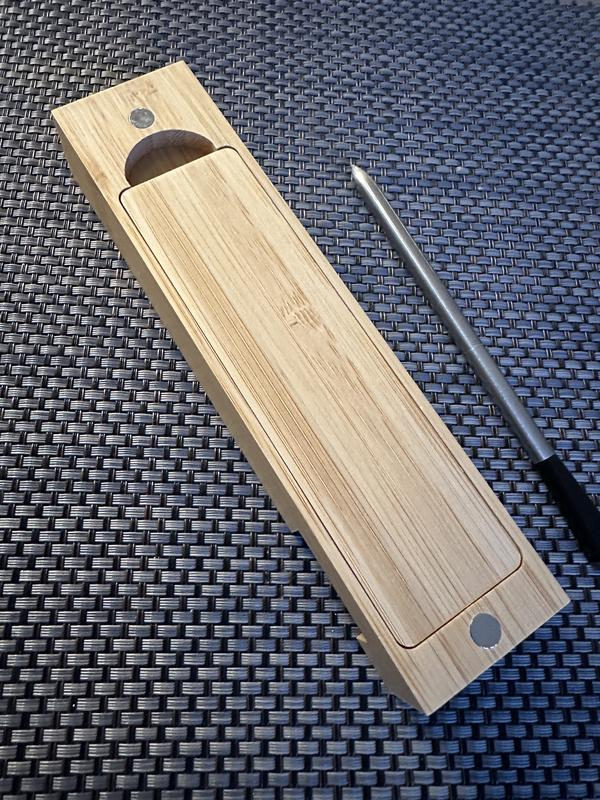 - The magnetic bamboo charger unit stores and charges the probe up to 100 times using one AAA battery.