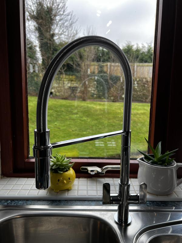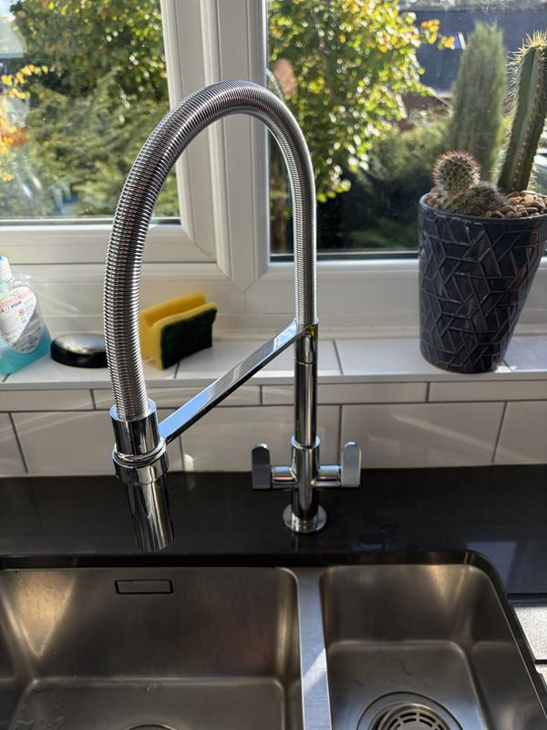 Lovely practical tap though pressure reduction is too much imho hence dropping a star. Easy to fit, and flexible hose great assuming it is resilient over the years to come. Both hot and cold levers and swivel really smooth in operation