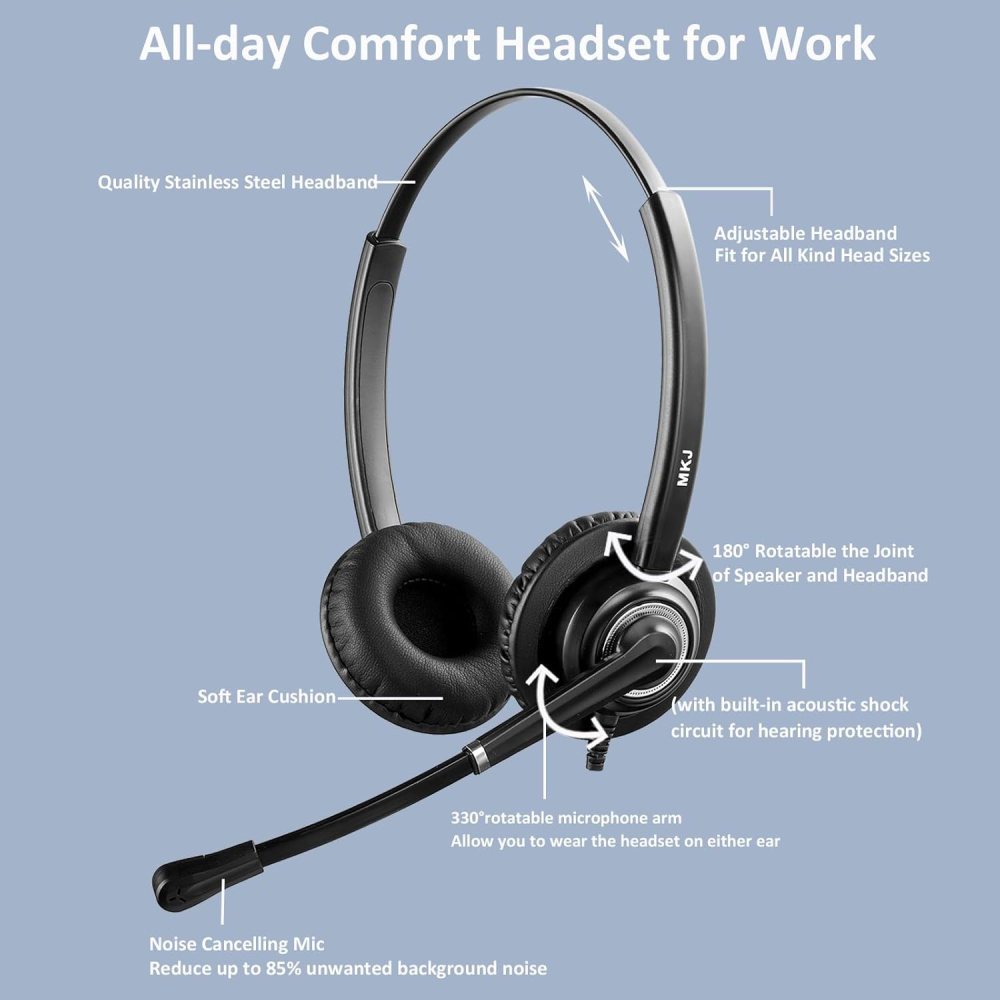 Elevate Your Professional Calls: MKJ Corded RJ9 Noise Cancelling Headset for Cisco IP Phones