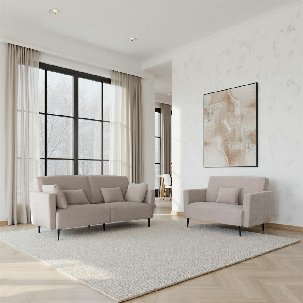 The MOONAP Monroe Beige Fabric Loveseat is a contemporary, space-saving two-seater sofa designed to bring luxurious comfort and high style to modern homes and smaller living areas. Featuring premium, durable beige fabric, deep seating, and plush, high-density foam cushions, this loveseat is optimized for sophisticated lounging and everyday relaxation.