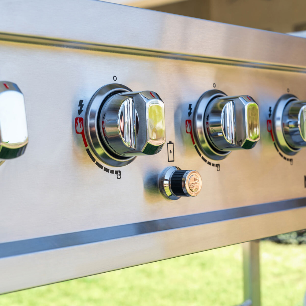 - Massive 8 Main Burners for precise, high-volume grilling control.