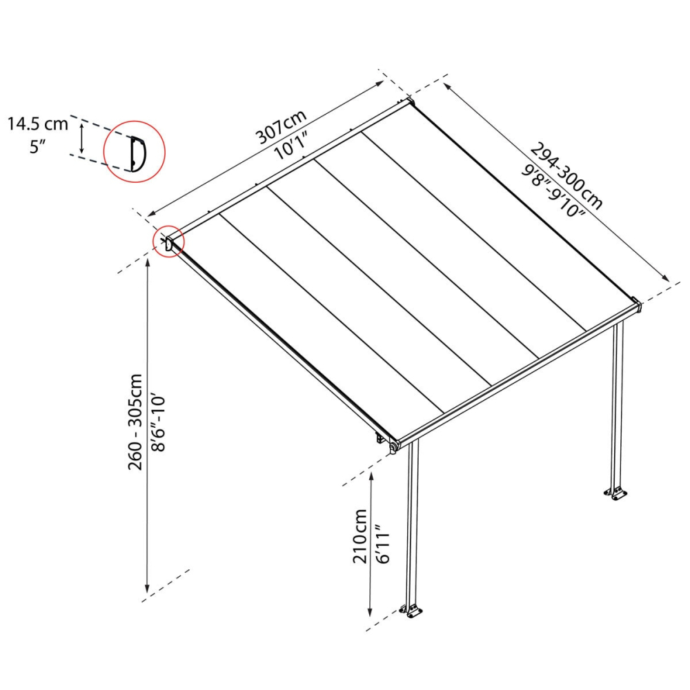 Palram Feria 3 Veranda Patio Cover in Grey, 3 x 6.