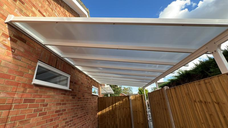 You will see from the pictures that our roof is not transparent. We have already got a similar patio cover and found that the standard polycarbonate roof panels allow a lot of heat through so we have fitted SolarCool Window Film to the underside of roof panels before installing them. It does require very careful measuring because the film needs to tuck into the edges of the panels, but it is not difficult to do.