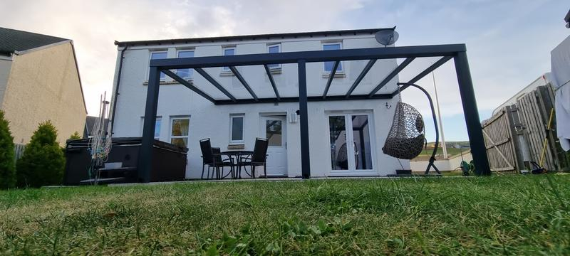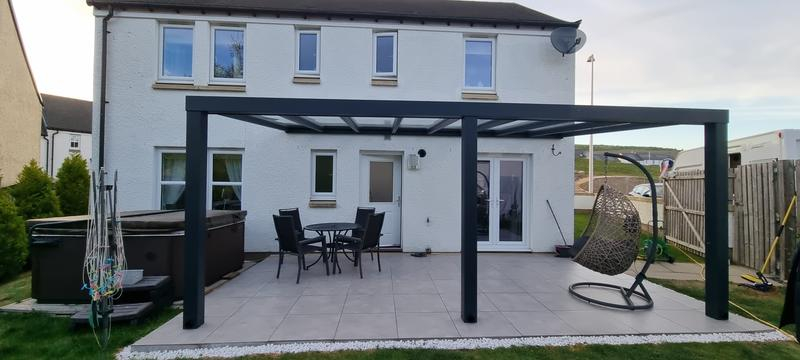 Looks great! Surprisingly unobtrusive as the lines are very clean. Assembly was a bit terrifying and took 2 days not 1 morning, but instructions were clear enough and we all survived. Need a tall person, and the patio must be very flat for the screws to go in properly. Palram were helpful and communicated well. Overall we’re really happy with it.
