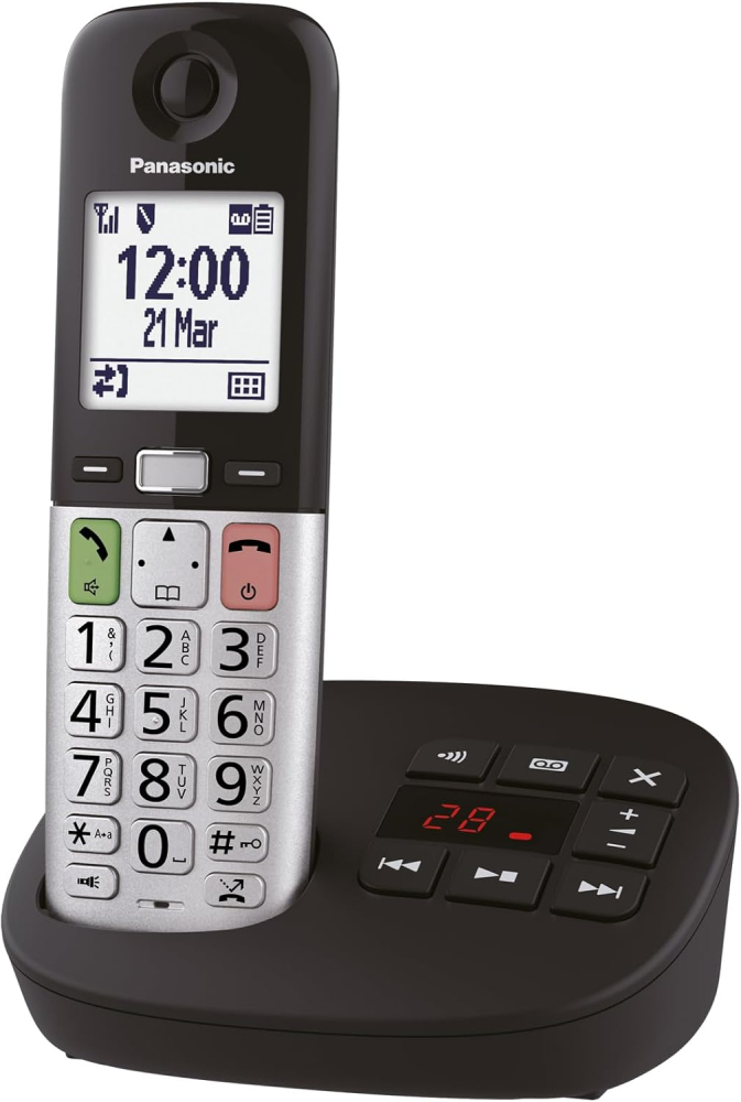 Upgrade Your Home Communication: Introducing the Panasonic KX-TGU432EB Digital Cordless Landline Phone System in elegant Black & Silver. This essential home office and residential phone package includes a base unit and two cordless handsets, offering crystal-clear digital sound and advanced features designed for convenience and safety. Experience seamless communication with a built-in Answering Machine for missed calls and a large, easy-to-read LCD Display and illuminated big-button keypad for effortless dialing. Specifically engineered for enhanced accessibility, this model features Hearing Aid Compatibility (HAC) and Enhanced Volume control, making it the perfect telephone for the elderly and hard of hearing. With nuisance Call Block, a Torchlight LED for safety, and the Fav Call quick-dial key, the Panasonic KX-TGU432EB is the ultimate digital phone solution for modern homes.