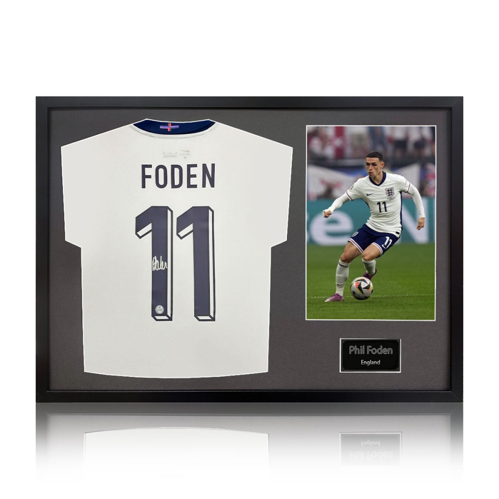 Elevate your collection with this absolutely stunning, professionally framed 2024 England Football Shirt, personally hand-signed by midfield maestro Phil Foden. This exclusive piece captures the essence of England’s talent and is presented in a luxurious frame, complete with a crisp white mount and a high-resolution action photo of Foden. Perfect for die-hard England fans, Manchester City supporters, or serious memorabilia collectors, this investment-grade item offers unparalleled authenticity and immediate visual impact for your home, office, or fan cave. Don’t miss this opportunity to own a verified signature from one of football’s most exciting global stars.
