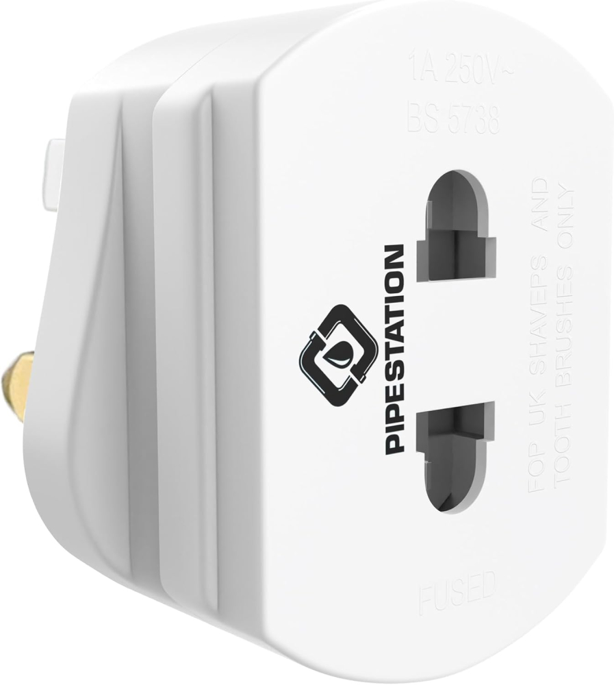 Stop struggling with incompatible bathroom sockets! The Pipestation UK Shaver and Toothbrush Adapter Plug is the ultimate, high-quality solution for safely powering and charging your electric toothbrush or shaver in standard UK 3-pin wall outlets. Designed to flawlessly convert 2-pin plugs (common on shavers, electric toothbrushes, and some European devices) into a safe, grounded 3-pin UK plug, this adapter is a must-have for every home bathroom and a travel essential. Its lightweight, durable design ensures reliability, whether you are at home or on the go. Enjoy hassle-free charging for your Oral-B, Philips Sonicare, and other 2-pin devices, making obsolete the need for dedicated bathroom shaver sockets.