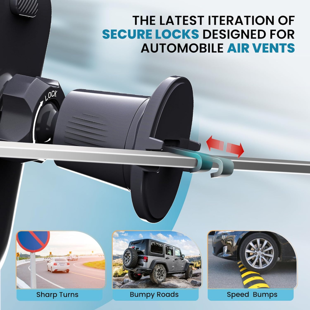 - Vent Mounting Type: Attaches firmly to most standard air vents, keeping the dashboard clear.
