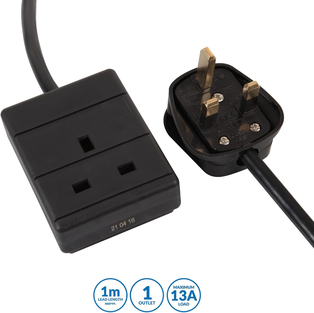 Pro Elec PEL00517 1m 13 A 1 Way Gang Single Socket Power Mains Extension Lead Cable – Black