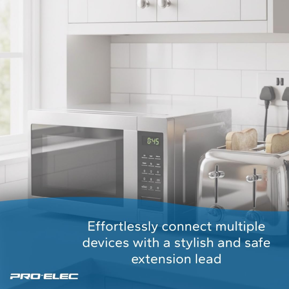 Instantly Triple Your Power Capacity Safely! Upgrade your home or office workstation with the Pro-Elec PL15694 Switched Extension Lead. This high-performance, 1-meter (3.28 ft) cable features five individually switched sockets, giving you precise control over your connected devices. Perfect for high-demand setups like entertainment centers, desktop computers, or kitchen appliances, this extension lead is engineered for ultimate safety, carrying a robust 13A rating and conforming to strict BS 1363/A standards. Its sleek white finish integrates seamlessly into any modern decor, offering a powerful, reliable, and aesthetically pleasing power solution.