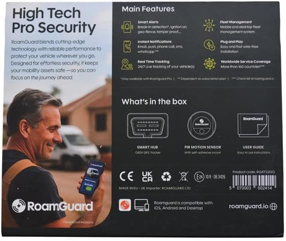 Pro, Smart Van Alarm and Tracker, Phone Alerts, Real time vehicle GPS Tracking, Fast Setup, Geofence, Motion and Tamper Alerts, 12 month subscription, AI Asset Inventory, 160 countries