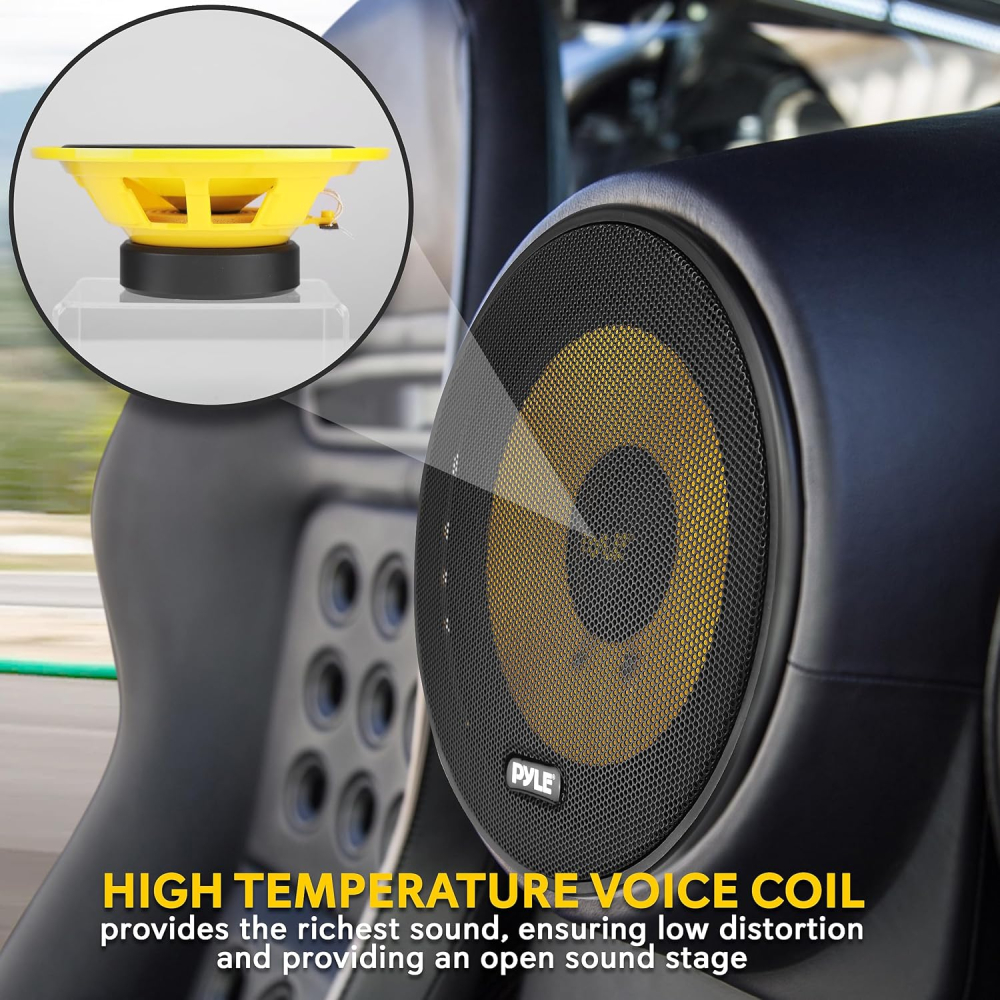 10 reviews for Pyle Component Car Speakers 16.5cm – 2-Way 400W High-Performance Audio with Yellow Poly Injection Cone, Butyl Rubber Surround, 1.13kg Magnet, Crossover & Wiring Kit
