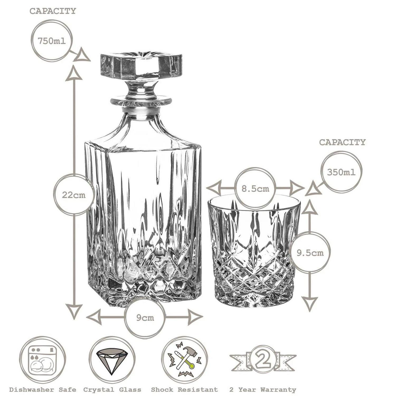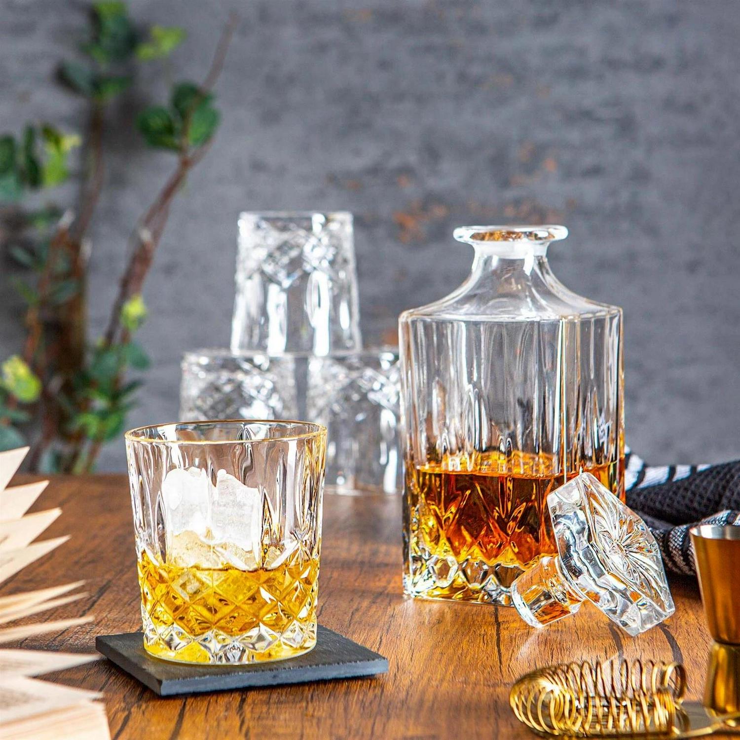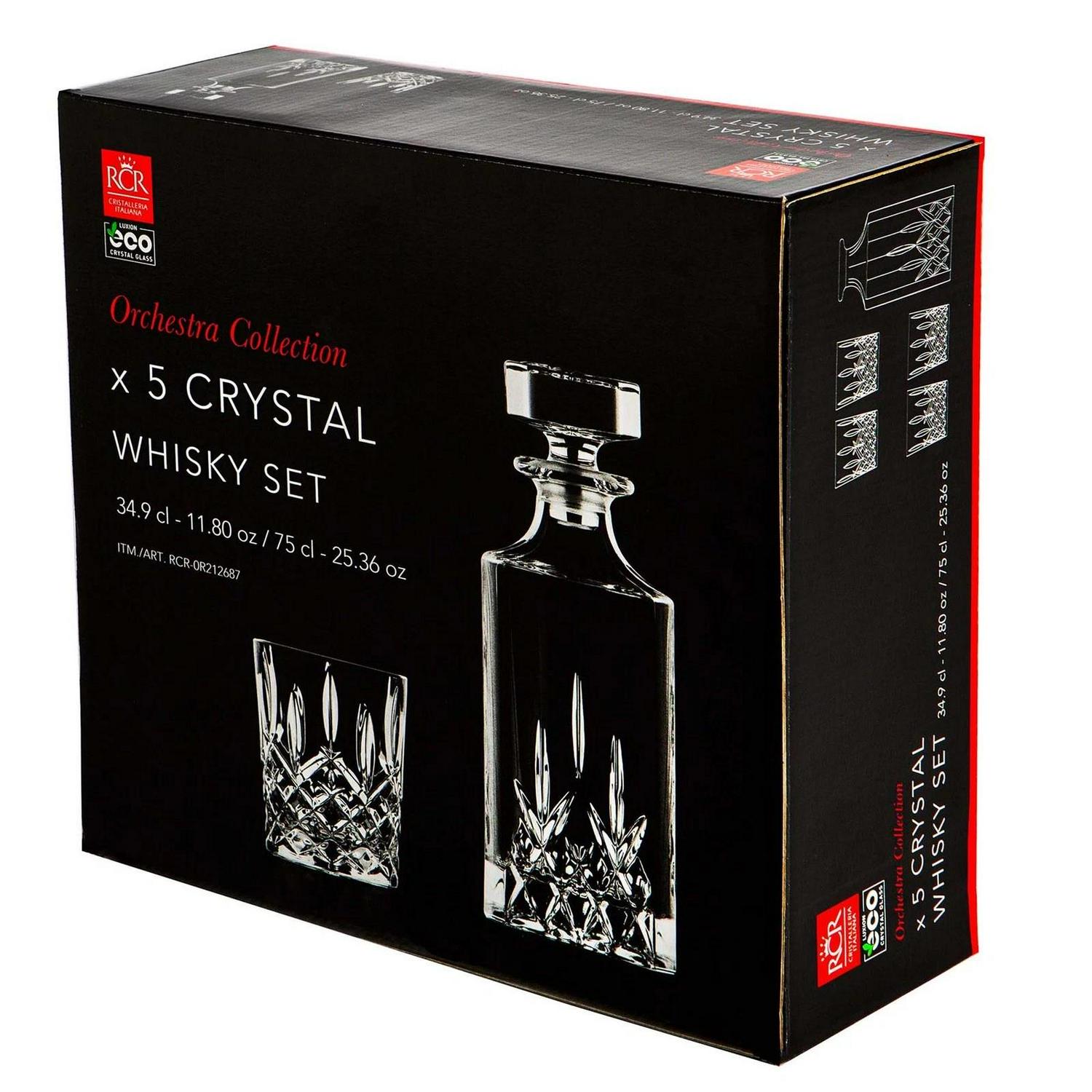 RCR Crystal 5 Piece Orchestra Whisky Decanter and Glasses Set Spirit Holder