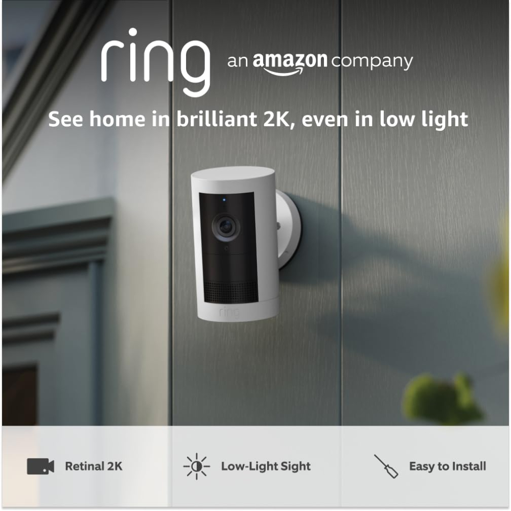 - Wide-Angle 2K Video with Ring Vision: Capture crystal-clear, high-resolution footage for a comprehensive view of your property, essential for effective home monitoring.