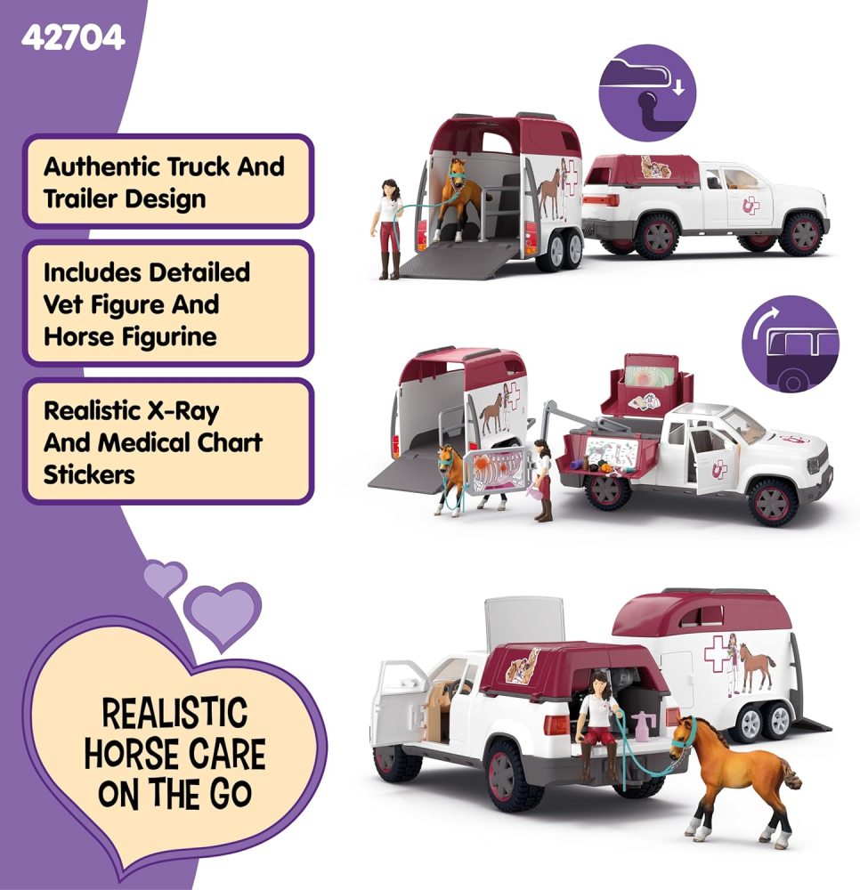 SCHLEICH Horse Club – 90 PC Mobile Vet with Trailer Playset – Includes Toy Horse Figurine, Poseable Veterinarian Figure, Moveable Truck and Accessories – Interactive Play Toys for Kids Ages 5+| 42704