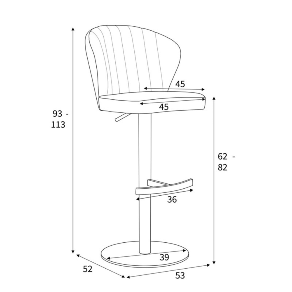 - Seat Height adjustable between 60cm and 82cm (Counter to Bar Height).
